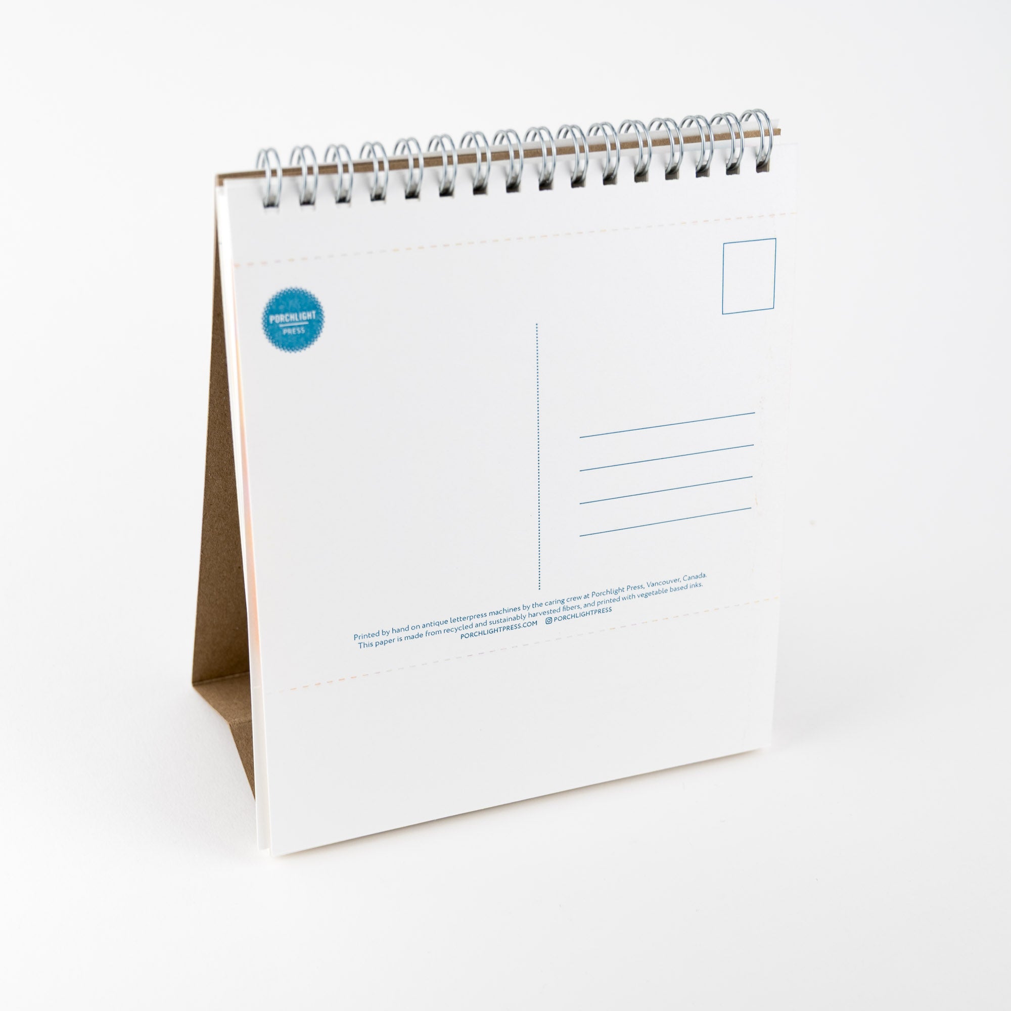 What makes this calendar a two-in-one delight is that on the back of each month's art print, you'll find a printed postcard that's conveniently perforated for easy removal, and ready to be sent in the mail. It's a wonderful way to send a monthly greeting to a friend or loved one.