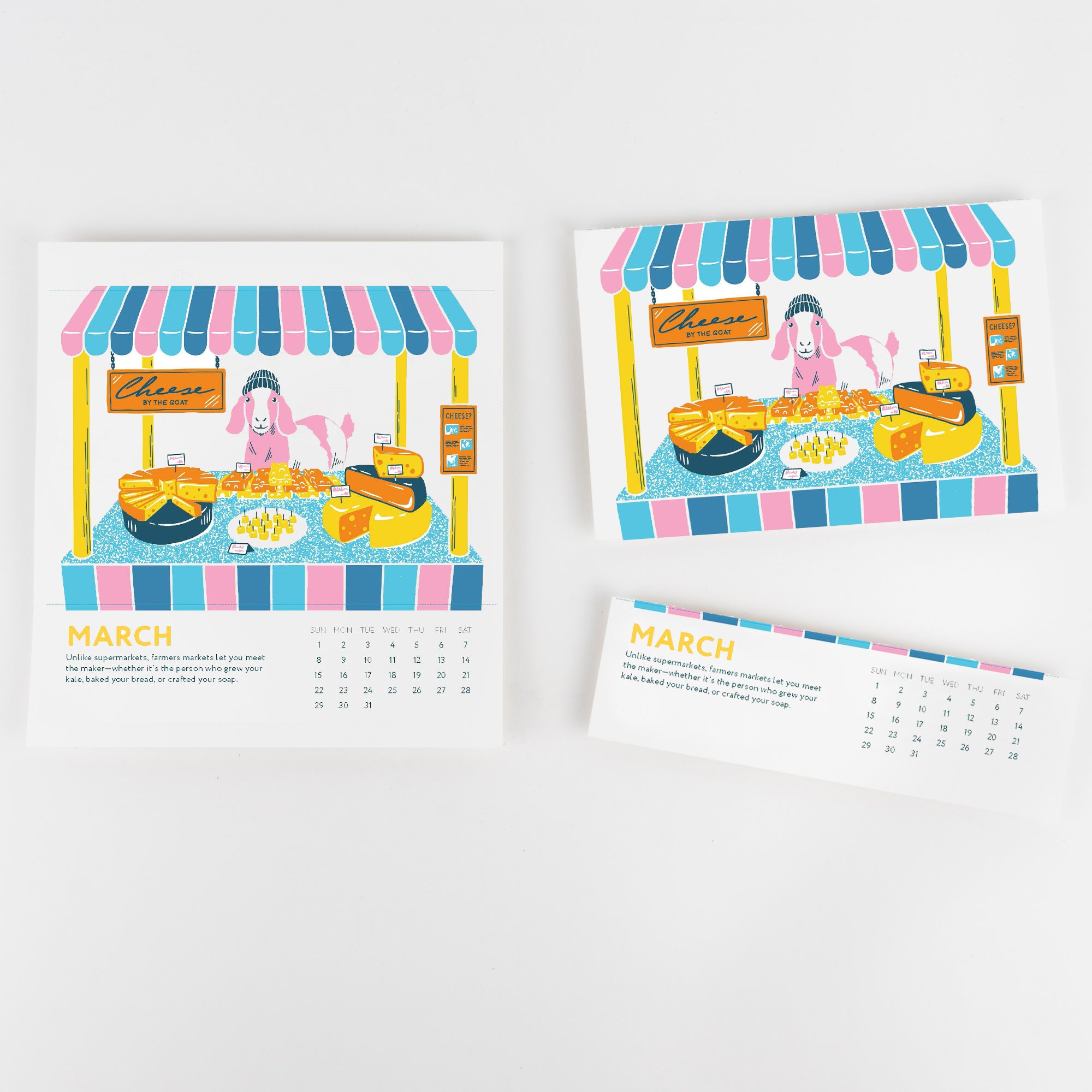 Our 2026 Letterpress Desk Calendar celebrates the energetic spirit of local farmers markets everywhere!