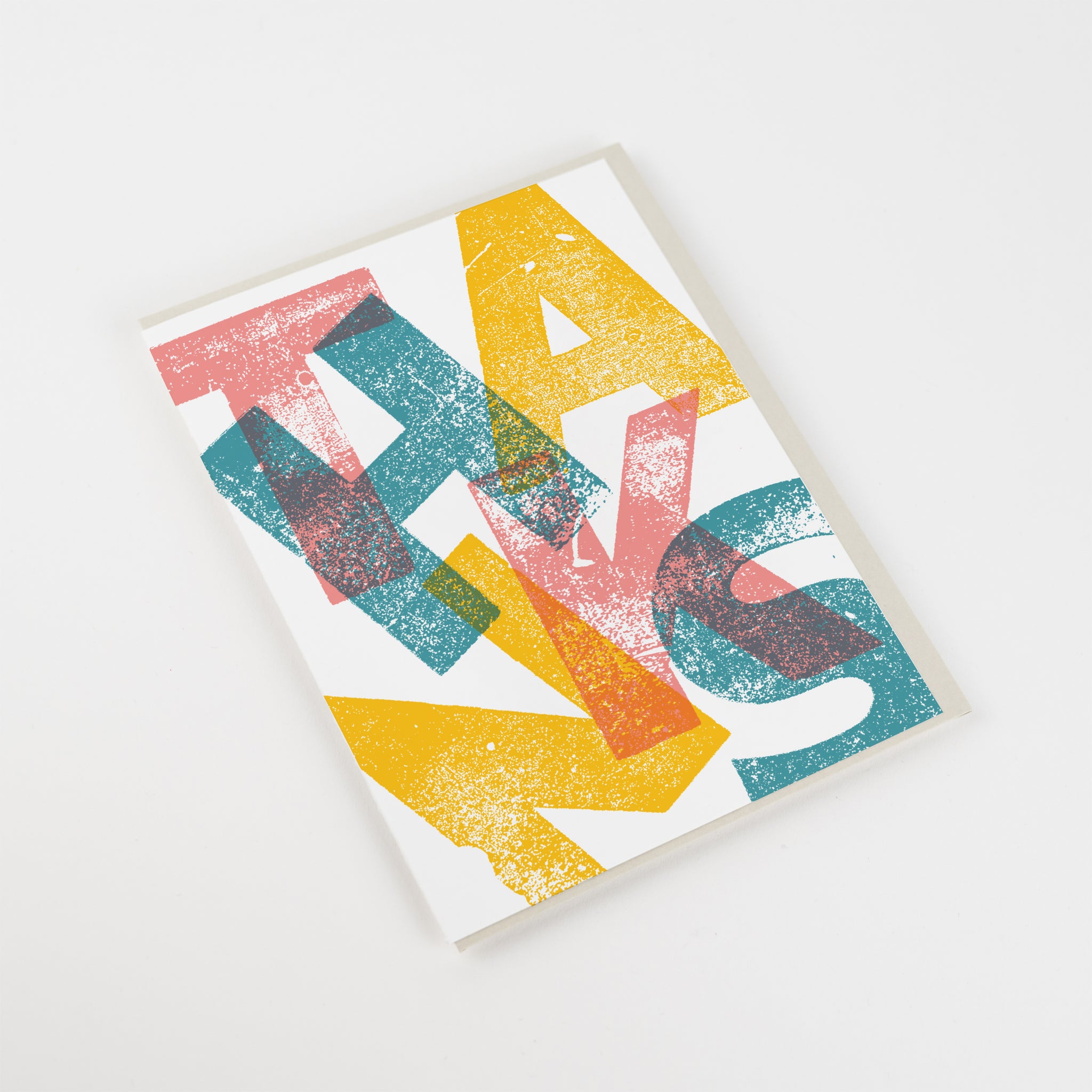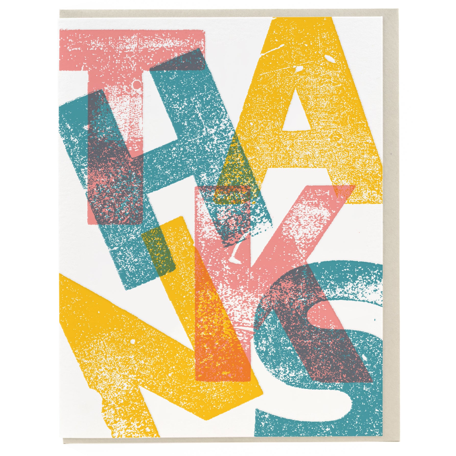 A colourful thank you card inspired by the classic texture of printed wood type.